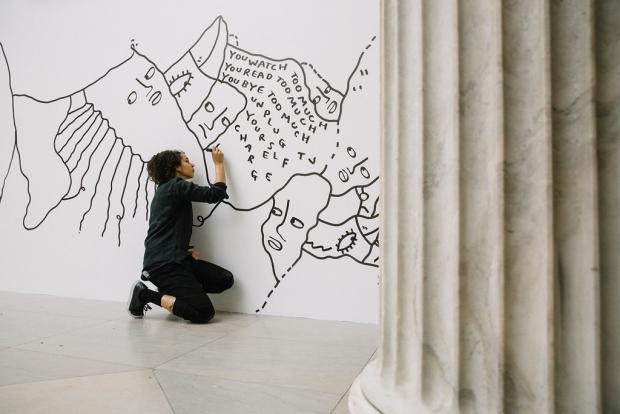 Shantell Martin draws. Compulsively. Spontaneously. On everything: walls, found objects, napkins at dinner, her friend’s car, even her fans. Martin rejects categories such as “fine art” versus “commercial art” and refuses to be “put in a box.” She prefers to categorize projects as a good fit or not, and accepts or rejects commissions accordingly.