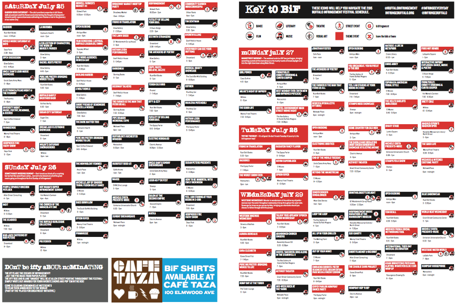 Pick up this week’s issue of The Public for all of your Infringement Festival 2015 needs, including a 20-page pullout. The Infringement pullout includes a list of venues, a calendar of events, and a centerfold map!